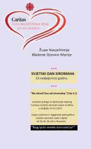 Nedjelja, 19. 11. 2023. – SVJETSKI DAN SIROMAHA 33.nedjelja kroz godinu “Ne okreći Iica od siromaha.”(Tob 4,7)Novčane priloge za djelovanje župnog Caritasa možete darovati nakon