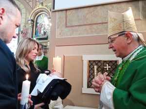 Pomoćni zagrebački biskup Mijo Gorski na Dan života, u nedjelju 4. veljače, u župi Navještenja BDM u Velikoj Gorici za vrijeme mise u 11:30 krstio